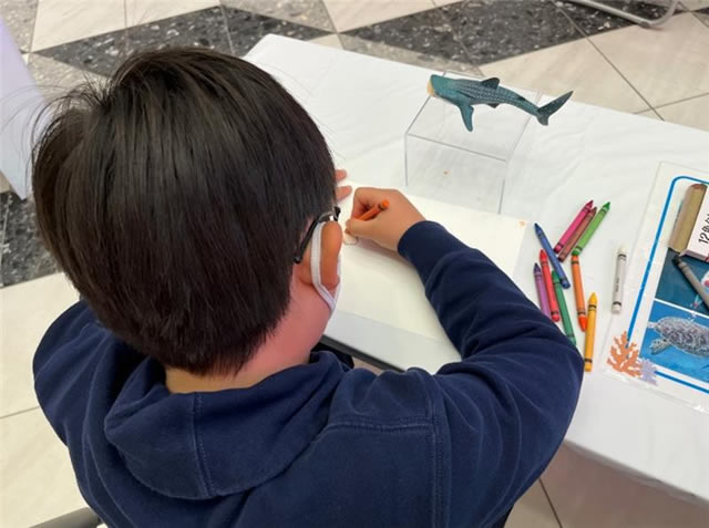 お手本となる絵本を開きながら、絵を描くヒントを見つけられるワークショップを開催。
