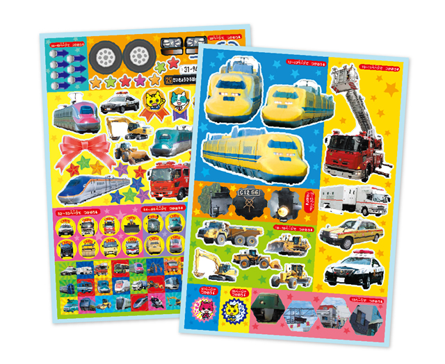 そのほかに、自分で作れる「昔の新幹線」「いろいろな消防車」の「ミニずかん」、おけいこページで作ったのりものを使って遊べる「のりものタウンマップポスター」、ホワイトボード用ペンで何度も書いて繰り返し文字の練習ができる「おけいこボード」の3つのとじ込み付録もついています。