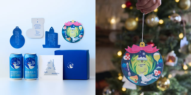 トナカイロゴの「銀河高原ビール」は、親子でクリスマスをより楽しんでいただけるよう「サンタさんからもお願い」セットを2024年に開発しました。今年は新たに、絵本などを手掛けるユニット「tupera tupera」とコラボしたメッセージカードをセット内容に追加し、合計300名様にプレゼントします。「tupera tupara」コラボメッセージカードはリースをモチーフにしており、クリスマスリースのように壁に飾ってお楽しみいただけます。