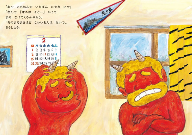 節分といえば「オニはそと、福はうち!」と豆を投げるものですが……。オニの立場から見てみると、豆まきほどコワイものはないんです!なんとか豆まきから逃れようと、あの手この手を尽くすふたりのオニを描く絵本『オニのせつぶんたいじ』が小学館より発売となりました。たった100円でお店の豆を買い占めようとしたり、お面をつけて変装してみたり……。ちょっとドジなふたりは無事に、乗り切ることが出来るのでしょうか。
