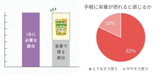 本製品を試用した方の全員が「手軽に栄養が摂れる」と回答。お子さまに人気のいちご味でほんのり甘く、タブレット形状なので、食べやすいのが特長です。