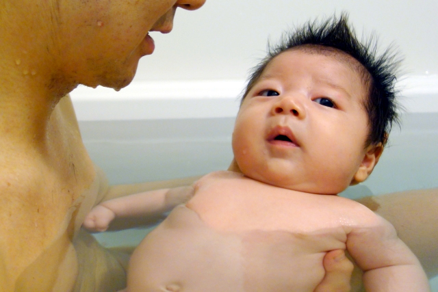 赤ちゃんをお風呂に入れるとき、お父さんの