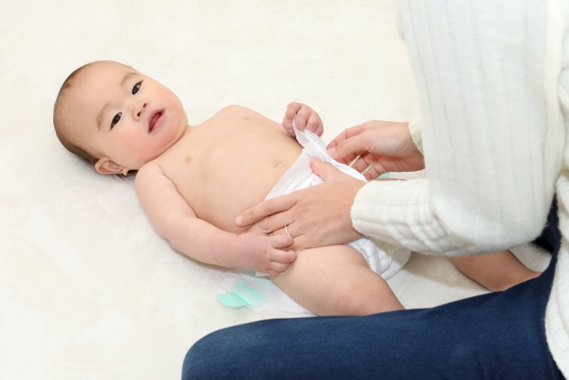 ねんねの赤ちゃんの紙おむつ替えの手順やポ