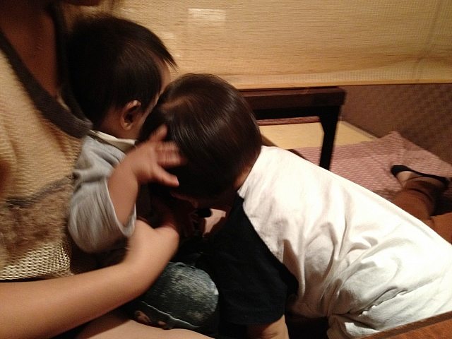 「ママも一緒に」と、くっついてばかりのわ