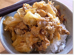<ひとり丼 キャベツと豚肉のチリソース炒