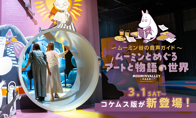 フィンランド語で「体験」を意味する展示施設「コケムス」を巡り、ムーミンと原作者トーベ・ヤンソンの世界を深く知る音声ガイド「ムーミンとめぐるアートと物語の世界」。ムーミントロールとともに館内を巡りながら、物語の魅力と原作者トーベ・ヤンソンの芸術の世界をより深く楽しめます。