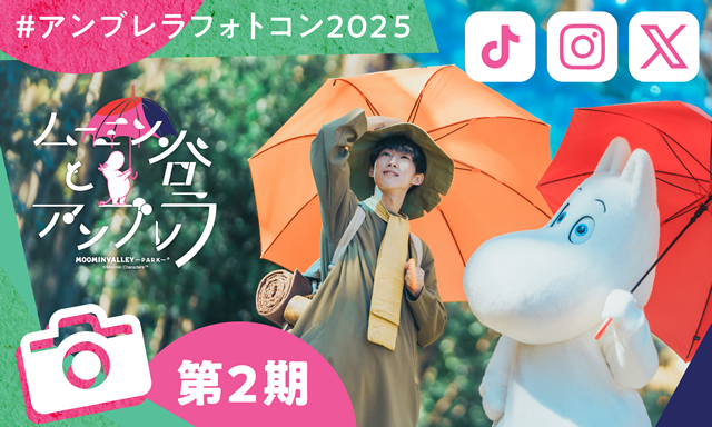 『ムーミン谷とアンブレラ』フォト&ムービーコンテスト「#アンブレラフォトコン2025」第2期を6月6日(金)〜6月29日(日)の期間に開催します。「アンブレラ×あじさい」をテーマにInstagram・X・TikTokに「#アンブレラフォトコン2025」をつけてアンブレラとあじさいが織りなす幻想的な風景の写真や動画を投稿してください。