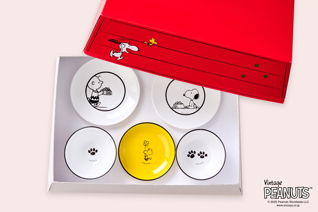 ●食器はスヌーピーやウッドストック、チャーリー・ブラウンがワンポイントのシンプルデザイン。儀式後は、お子様用の食器としても使用可能。
