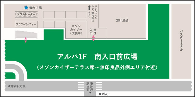 場所: | サンシャインシティ 専門店街アルパ1F 南入口前広場 |