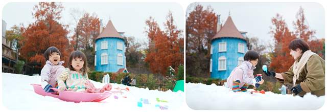 新たに導入した人工造雪機によって誕生した「ゆきあそびひろば」では、小さなお子さまでも安心して遊べるゆきあそび用の道具をご用意。ムーミン谷ならではの自然を感じながら、おこさまが思い思いの発想で過ごせる、のびのびとしたゆきあそびエリアです。