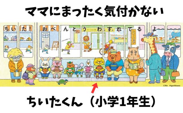 ママは懸命に追いかけますが、ちいたくんはぜんぜん気付いてくれません。果たして無事にお弁当を手渡すことができるのでしょうか?