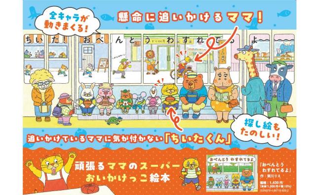 ママが悪戦苦闘するスーパー追いかけっこ絵本『おべんとう わすれてるよ』発売