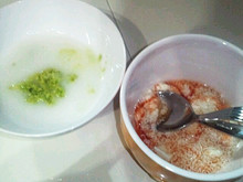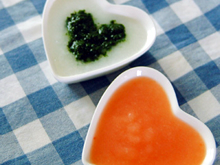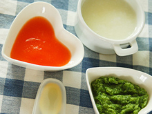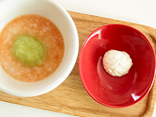 まだ食べられる食材は少ないですが、なるべく彩りのよい献立になるよう心がけています。酸味の強いトマトは、じゃがいもやお粥と合わせてあげると食べやすいようです。