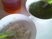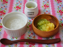 母乳には鉄分がないと聞いて積極的に取るように心がけています。ほうれん草にだしが入っているのと、しらすの味がお粥によく合うみたいでかなり大好物な一品。ヨーグルトは幼児期に入った上の子も基本的にフルーツの甘みだけで頂くようにしています。