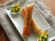 子供の好きなホワイトソースをベースにとうもろこしと枝豆の2色で彩り良く仕上げました。細めに巻くと、食べやすくなります。